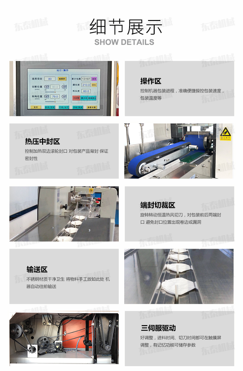 口罩包裝機(jī)產(chǎn)品簡介: 1.口罩包裝機(jī)速度快省人工山東濟(jì)南供貨枕式包裝機(jī)是目前國內(nèi)新型的自動(dòng)連續(xù)收縮 包裝設(shè)備,采用石英遠(yuǎn)紅外管加熱,節(jié)電高效(節(jié)電15以上); 2.收縮溫度和電機(jī)傳動(dòng)速