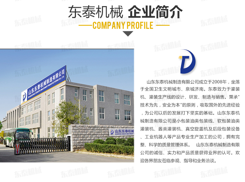 沈陽東泰機(jī)械隸屬于山東東泰機(jī)械,主營粉劑包裝機(jī)、醬類醬料包裝機(jī)、食用油灌裝機(jī)、食品包裝機(jī)、包裝流水線、灌裝生產(chǎn)線等產(chǎn)品,并且為東北地區(qū)客戶提供售后維修服務(wù)...
