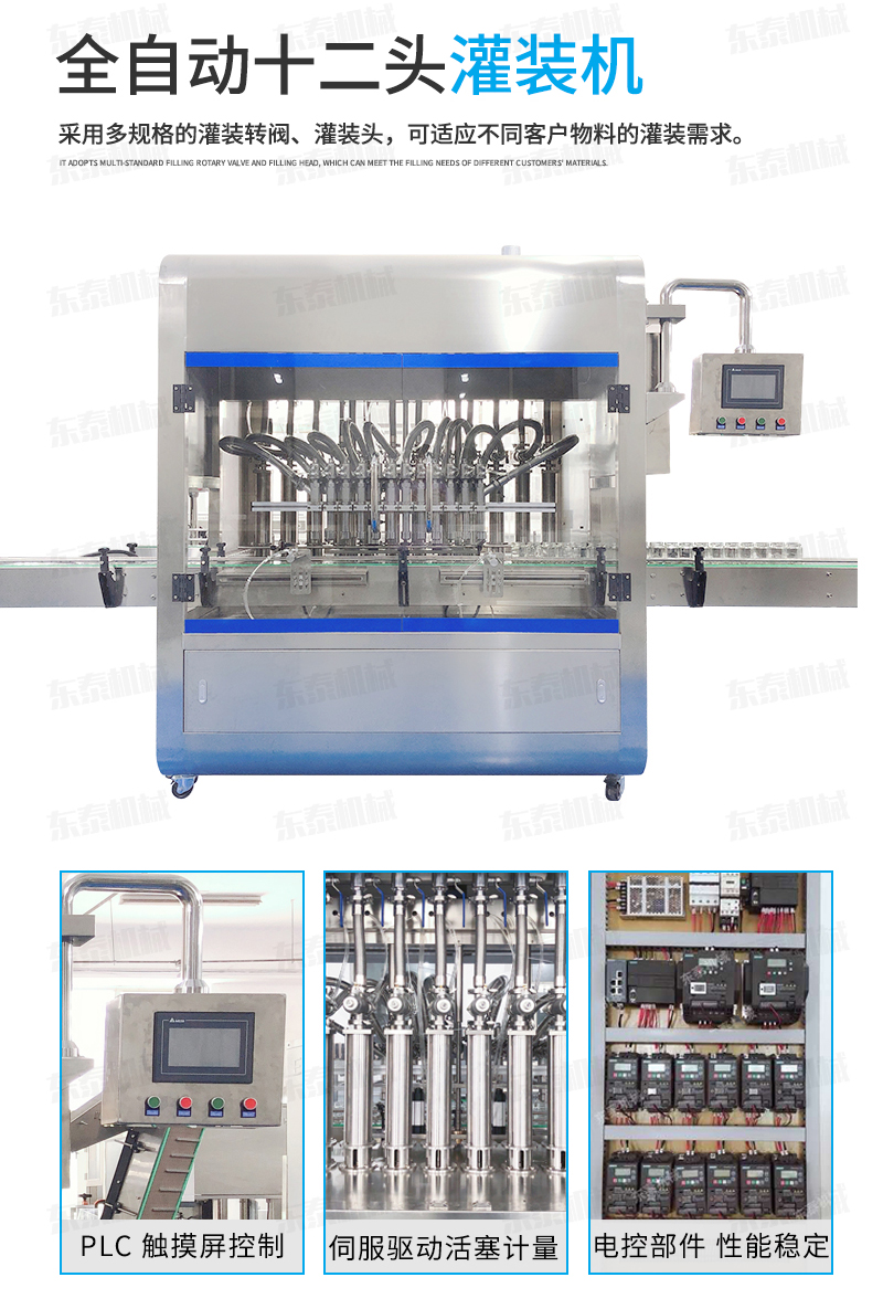 2、灌裝機(jī)以進(jìn)口PLC電腦控制、伺服驅(qū)動(dòng)計(jì)量,全彩色觸摸屏人機(jī)界面,一鍵完成計(jì)量切換確保容量之調(diào)整簡(jiǎn)易、快捷、準(zhǔn)確。是任何形式的灌裝機(jī)無(wú)法替代的;