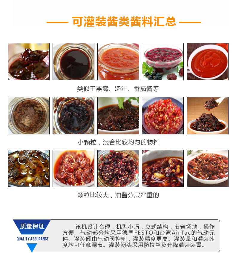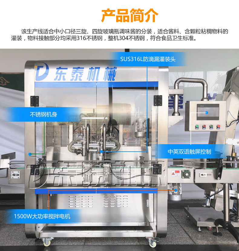 隨著機械技術(shù)的快速發(fā)展灌裝機的發(fā)展也是日新月異,使得其種類比較多。蘸醬在我國擁有悠久的歷史,在我國烹飪中占有著重要的地位,發(fā)展到現(xiàn)在在做菜和食品中也不可或缺,巨大的市場使得蘸醬灌裝機擁有巨