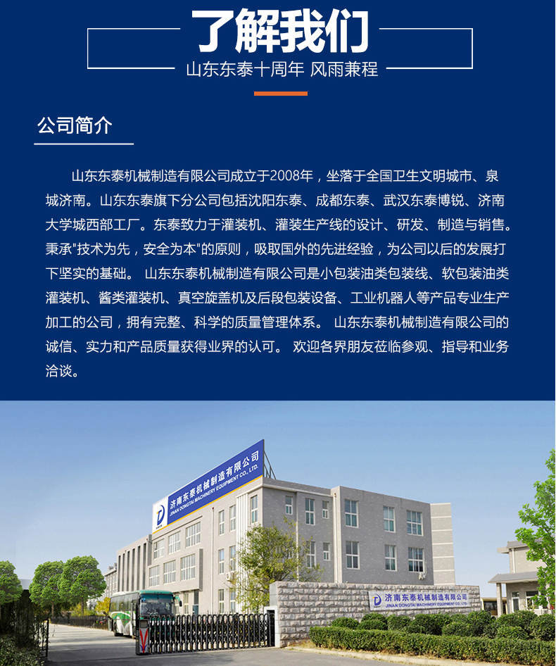 沈陽東泰機械隸屬于山東東泰機械,主營粉劑包裝機、醬類醬料包裝機、食用油灌裝機、食品包裝機、包裝流水線、灌裝生產(chǎn)線等產(chǎn)品,并且為東北地區(qū)客戶提供售后維修服務(wù)...